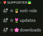 Once your accounts are linked, you will be able to see a new category called "🍄SUPPORTER🐸" and there will be a downloads channel. All current/past world downloads and exclusive other downloads like wallpapers will be contained here! Please feel free to ask in the chatter channel if you're looking for a specific download!